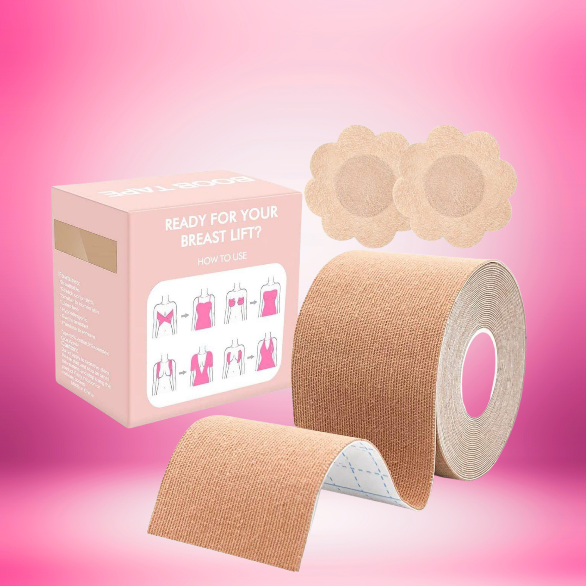 The LiftUpβ’ Boob Tape gives instant lift and support with complete freedom.